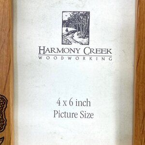 This is a beautiful, pre-owned wooden picture frame from Harmony Creek Woodworking in excellent condition. It features elegant laser-engraved details and an uplifting message, perfect for a Christian, farmhouse, or nature-themed decor style.