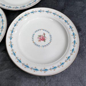 Harmony House Mount Vernon Hall China Bread Butter Plates Set 3 Blue Pink Floral