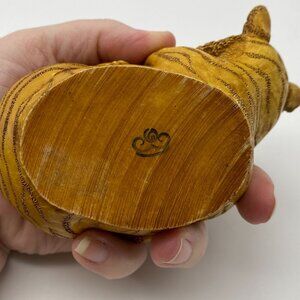 This Harmony Kingdom Trinket Jar, titled "Of the Same Stripe", is an adorable tiger-themed trinket box. Crafted from resin in England, it features a tan color and measures 5 inches.