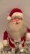 Wearing a classic red plush fabric suit with hat, a white plastic belt & white hard plastic boots.
