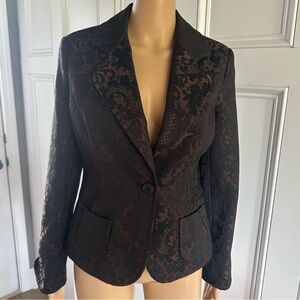 Harolds Black Lace Print 1 Button Slit Cuff With Pockets Blazer Jacket Womens 6