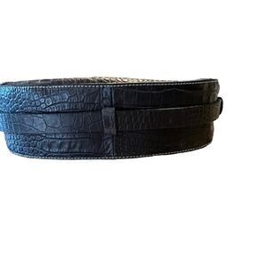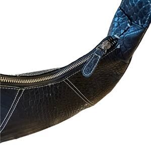 Harold’s Black Leather Alligator Print Shoulder Hobo Style Bag Zip Closure