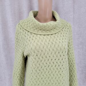 Harold's Cashmere Wasabi Spring Green Cable Knit Pointelle Cowl Neck Sweater