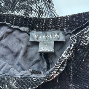Lovely crushed velvet pants by Harold’s in plaid pattern, hidden side zipper and 2 button closure, elastic waist at back. Black & silver colored size women’s 2. Preowned in great condition. Open to offers! PLEASE compare provided measurements with an item you already own to ensure a proper fit, no returns due to wrong fit.