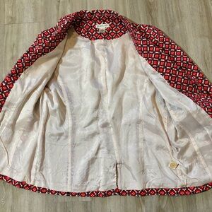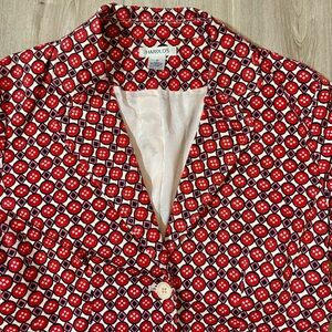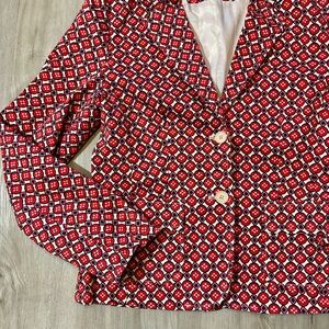 Harold’s Geometric Blazer Red Black White Womens Size 10 Lined Pockets Stretch