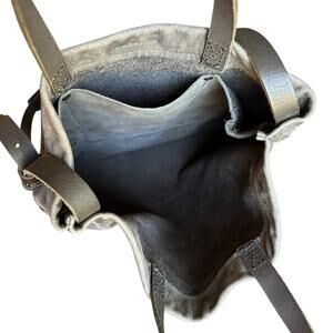 Carry the bag with the handles or crossover with the adjustable leather strap. The shoulder pad makes it comfortable to carry. Excellent condition with minor wear on back side (pictured)