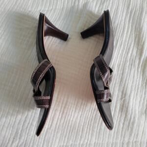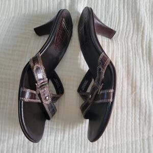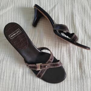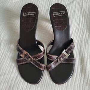 Harolds Womens 7 Freemon Dark Brown Open Toe Heel Sandals Strap Buckle Leather