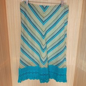 Women’s semi sheer lined skirt with crochet trim detail. Has a zip up back. Good condtion!