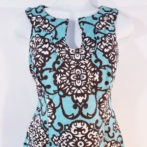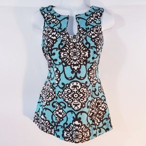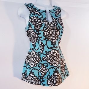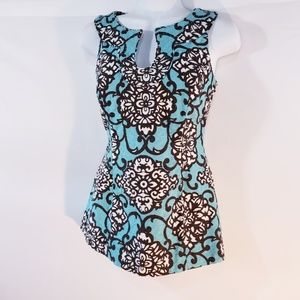 Harold's women's Top sleeveless Tunic Quilted shirt Size 2 Blue Damask Blouse