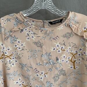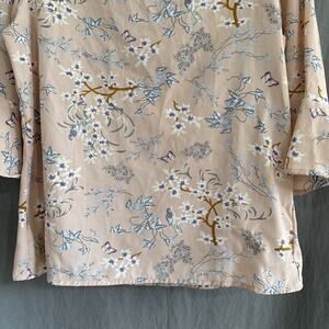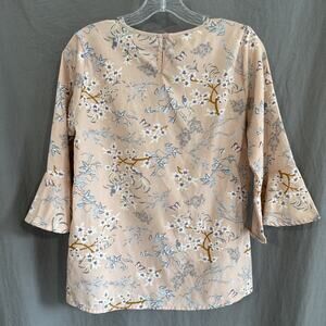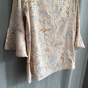 Harpa Peach Pink Floral Bell Sleeve Blouse Boho Romantic Top Size Medium