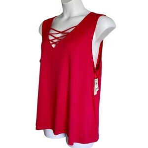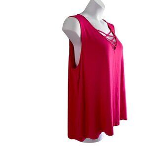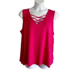 This vibrant Harper 241 Criss Cross Front Detail Sleeveless Top in Hot Pink offers stylish comfort in Plus Size 3X. Made from 95% Rayon and 5% Spandex, it is brand new with tags.