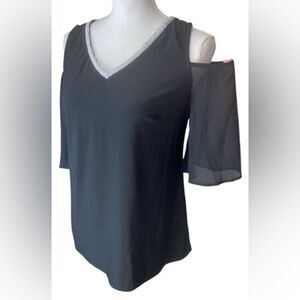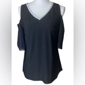 Harper 241 Womens Black 3/4 Sleeve Cold Shoulder Top Size Small