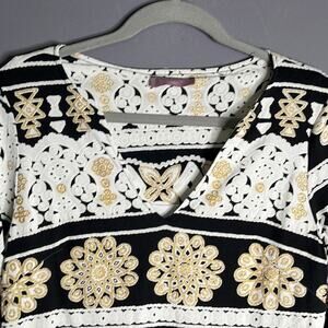 Harper Black, Gold and White Geometric Half Sleeve Tunic Dress Size Small