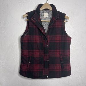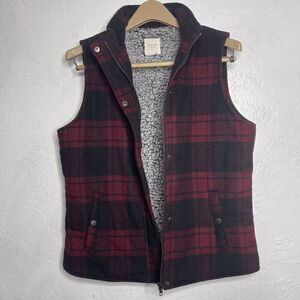 Harper Boutique Vest Size Small Plaid Full Zip Faux Fur Fleece Sleeveless
