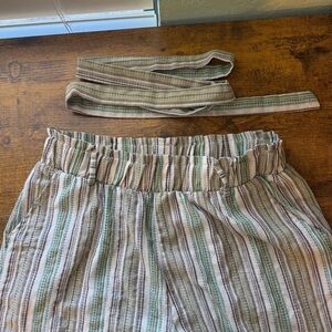 Harper By Block Boho Pants Paperbag Waist Jr Size XL Stripe Earthy Belt Pockets Cottagecore Nature Vibes