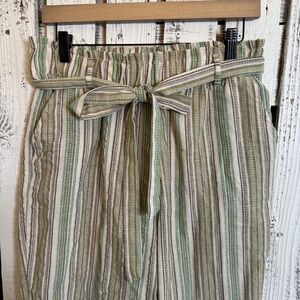 Harper By Block Boho Pants Paperbag Waist Jr Size XL Stripe Earthy Belt Pockets Cottagecore Nature Vibes