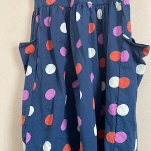 This sweet and playful dress is a must-have for any little fashionista! Featuring a navy blue background with bold polka dots in shades of pink, red, and white, it brings a pop of fun to any day. With short sleeves, a gathered waist for extra twirl factor, and handy side pockets for little treasures, this dress is both stylish and practical. Perfect for playdates, school days, or everyday adventures!