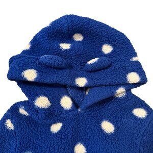 Adorable Harper Canyon sherpa hoodie in a rich blue with white polka dots. Features a soft, plush texture with cute 3D ears on the hood for a playful touch.