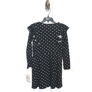 Harper Canyon Girls Long Sleeve Ruffle Dress Black & White Polka Dots Sz 4 $18