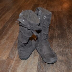 Size 5 Suede Boots - Grey/Brown Colored Boot, Tied bow on the back of the boot