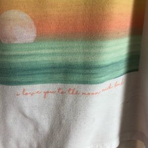 Gently used Harper & Elliot Tank. White with sunset on the front. Light pilling, see 4th pic for detail.
