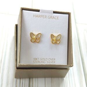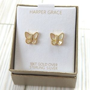Harper Grace Mother of Pearl 18KT Gold Sterling Silver Butterfly Earring Set NWT