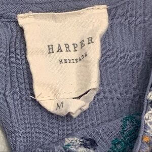 Harper Heritage Embroidered Gauzy Boho Blouse Blue M Boho Peasant Crepe Floral