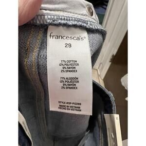 The Harper Heritage High Rise Boot Cut Front Slit Jeans in size 29 are a stylish and versatile addition to any wardrobe. Featuring a solid blue color with a medium wash, these jeans are made from a blend of polyester, spandex, rayon, and cotton denim. The high rise waist and regular fit offer a flattering silhouette, while the bootcut style and front slit add a trendy twist. With a zip and button closure, these machine washable jeans are perfect for various themes such as festivals, rock, hippie, and 90s-inspired looks.