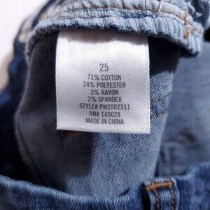 Women's Harper Heritage high rise skinny medium wash blue distressed stretch denim jeans. Has minor wear on seat and pilling on the inside pockets as shown in photos. Women's size 25, real measurements shown in photos with jeans laid flat: