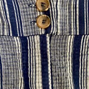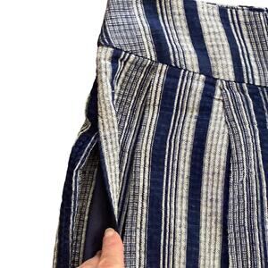 Harper Heritage Linen Blend Blue Striped Boyfriend Shorts LG Nautical Coastal. High rise. Two button and zip closure. Pleated front. Side seam pockets. Lined. 65% viscose, 35% linen.