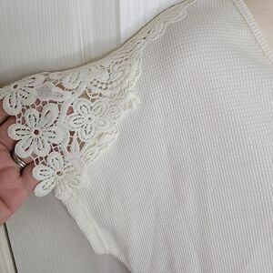 Harper Heritage Nwt Francesca's waffle knit lace sleeve top small