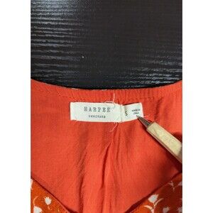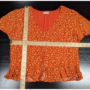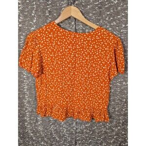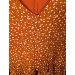 Harper Heritage Orange Floral Ruffled Button Up V-Neck Blouse Women's S