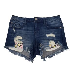 Harper Heritage Womens 26 Embroidered Patchwork Distressed Denim Shorts