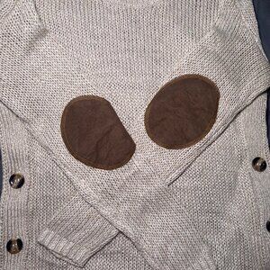 Harper Heritage Womens Beige Button-Side Sweater Size M With Elbow Patches
