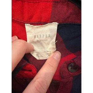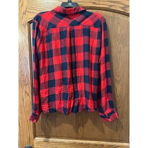 Keywords: plaid shirt, button up, long sleeve, womens shirt, red and black, twist front, casual top, harper heritage, xl shirt, checkered, flannel, western shirt