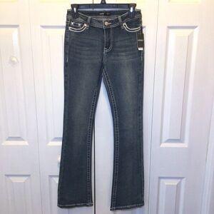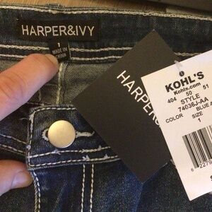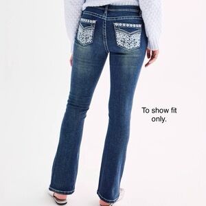Harper & Ivy Juniors Rhinestone Embroidered Pocket Flare Leg Jeans Size 1. New with tags. From smoke free home. * model photos are a different color/pocket style and are to show fit only.
