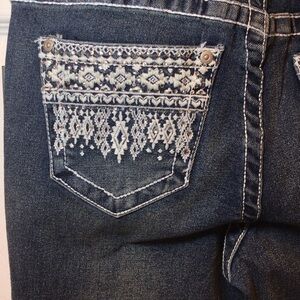 Harper & Ivy Juniors Rhinestone Embroidered Pocket Flare Leg Jeans Size 1