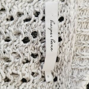 Harper Lane Gray Black White Crochet Open Knit Sweater