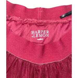 Harper + Lemon women's, prom or formal dress, two-piece set, in a deep cranberry color. Size medium (skirt waist is 26", but elastic and very stretchy; skirt length is 20" from waistband to hem). Both the off-shoulder top and skirt are fully lined. Worn once for school dance by 5' 6" 120 lb teenager (see photos). In excellent, like-new condition with no rips, tears, stains, or blemishes.