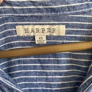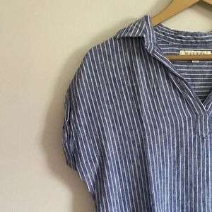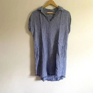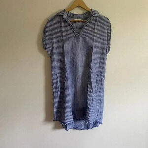 Harper Dress Blue and white vertical stripes Linen blend Pockets Raw hem Excellent preowned condition size extra small
