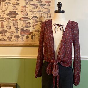 Harper & Me Sheer Floral Tie Front Kimono Top