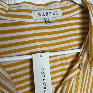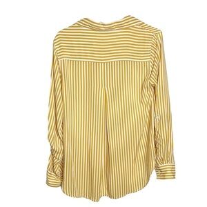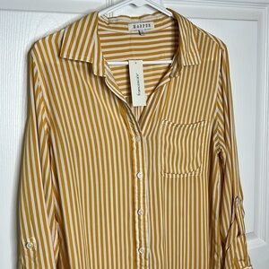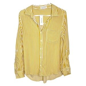 Harper NWT Vera Striped Hi Lo Hem Button Down Shirt in Marigold Yellow Small
