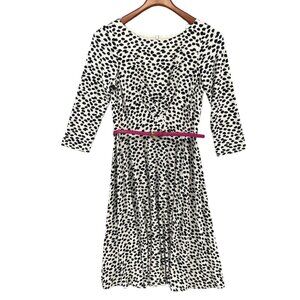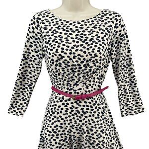 Harper Rose Belted Dress Black White Cheetah Print Spotted 3/4 Sleeve Size 6