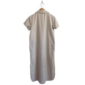 Effortless, versatile, and timeless this Harper Sage Mesa Dress is the perfect shirt dress for any season. Crafted from 100% cotton in a subtle beige pinstripe, this dress features a flattering v-neck collared neckline, short sleeves, and a button-down front for a clean, classic look. Details like the side slit hem and soft lining to the slit add both comfort and movement, making it ideal for workdays, casual weekends, or vacation styling.