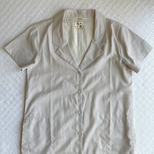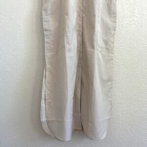Harper Sage Mesa Dress Beige Stripe Short Sleeve Button-Down Shirt Dress Cotton