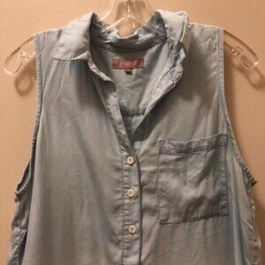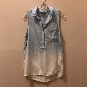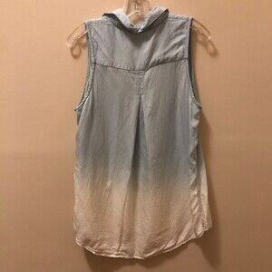 Harper Size Medium Lyocell Sleeveless Collared Blue Ombre Chambray Shirt