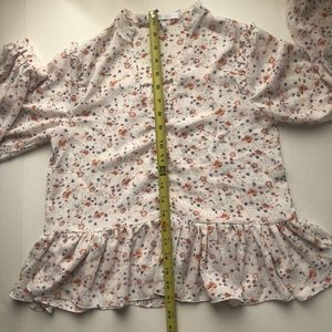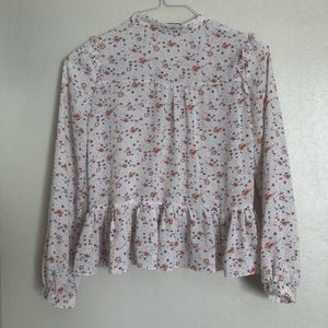 Introducing the beautiful Harper Wren Floral Crop Blouse in size medium. This stylish blouse features a lovely floral pattern, long sleeves, a V-neckline, and a pullover closure. It's perfect for any occasion, whether it's casual, workwear, or business attire.