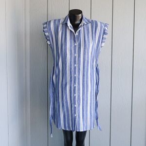 Sleeveless 100% cotton button down dress.