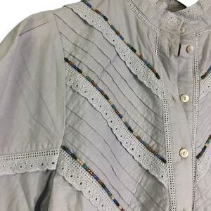 Harper Sage Whimsy Blouse Cottage Core Beaded Top