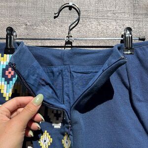 Harper Women's Blue Geometric Print Cotton Embroidered Mini Skirt Size Medium